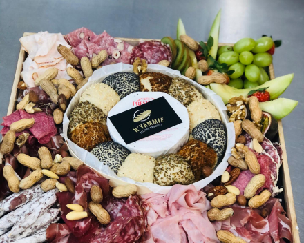 assortiment van kazen en vlees ( +- 300gr per persoon) met garnituur, groenten, aardappel in schil en koude sauzen